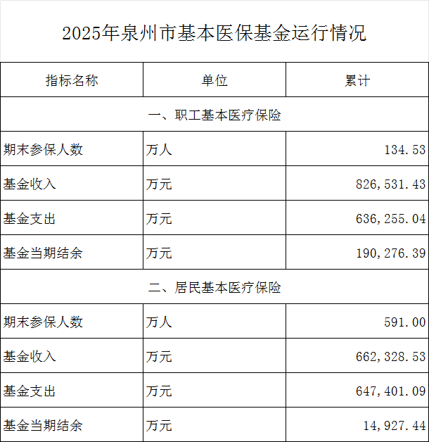 2025年泉州市基本医保基金运行情况