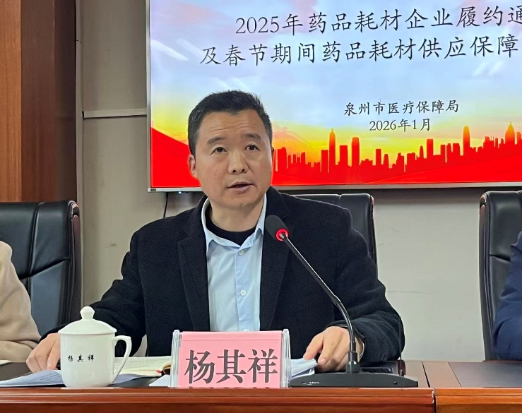 1月28日,市医保局召开2025年度药品耗材企业履约通报暨2026年春节期间药品耗材供应保障协调会。市医保局四级调研员杨其祥主持会议并讲话,局价采科、市医保中心相关人员以及泉州片区药品耗材配送企业代表参加会议。